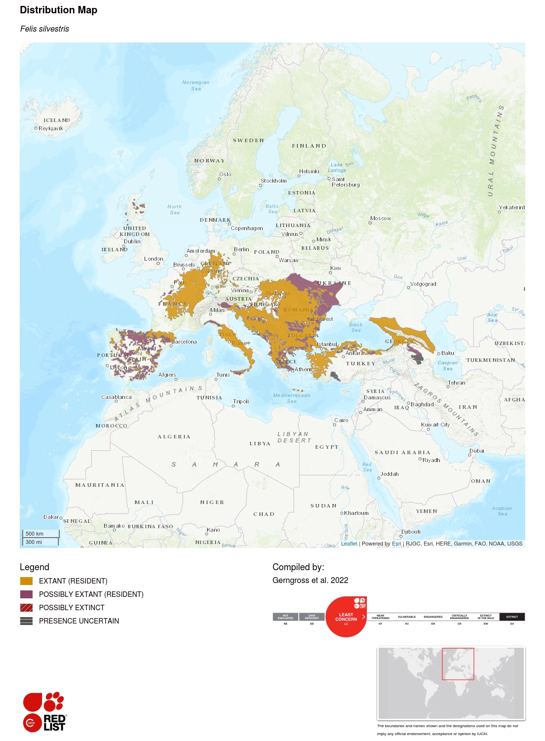 15 Gerngross, P., Ambarli, H., Angelici, F.M., Anile, S., Campbell, R., Ferreras de Andres, P., Gil-Sanchez, J.M., Götz, M., Jerosch, S., Mengüllüoglu, D., Monterosso, P. & Zlatanova, D. (2022): Felis silvestris. The IUCN Red List of Threatened Species 2022: e.T181049859A181050999.