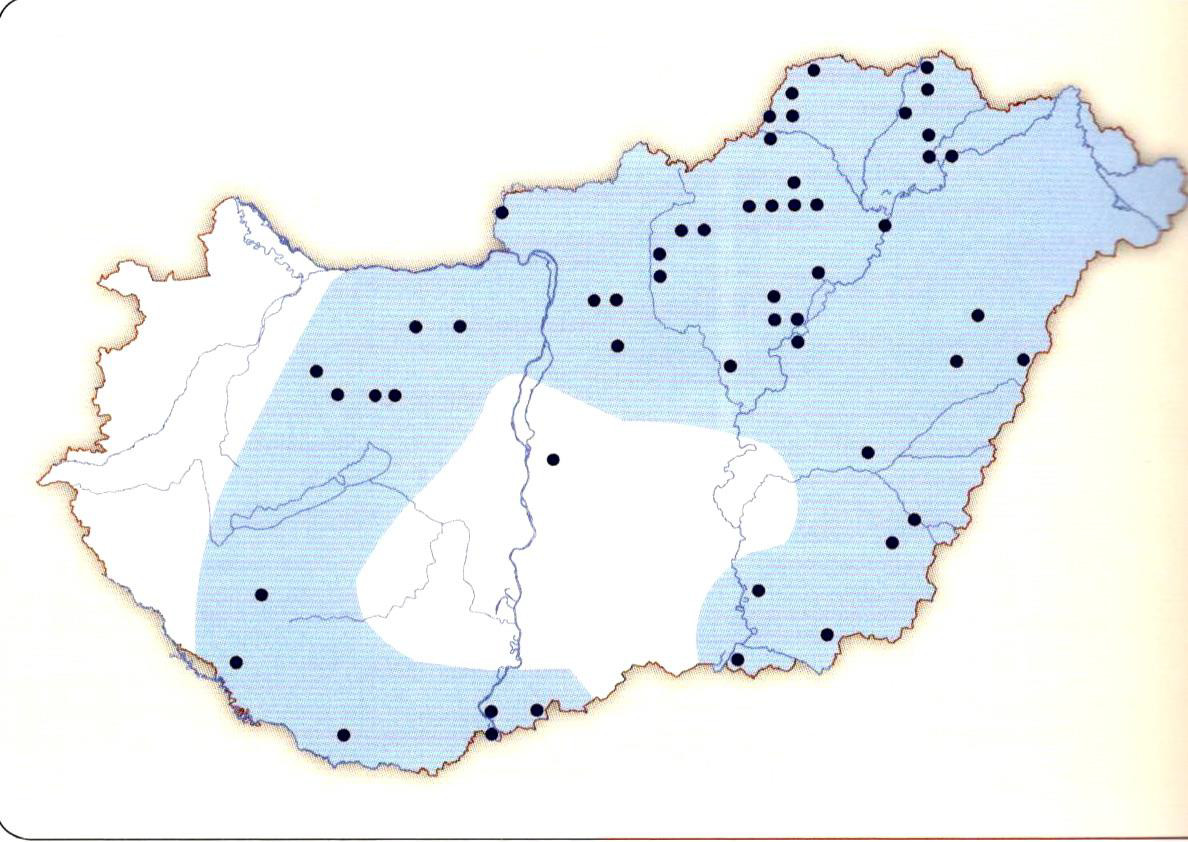 5. ábra - Az európai vadmacska magyarországi elterjedése. Forrás: Bihari Zoltán és mtsai.: Magyarország emlőseinek atlasza.
